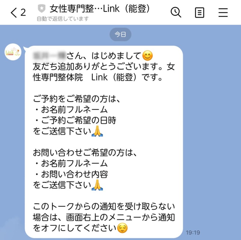 女性専門整体院Linkは 「 当日予約OK 完全予約制 」 です。