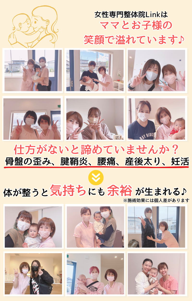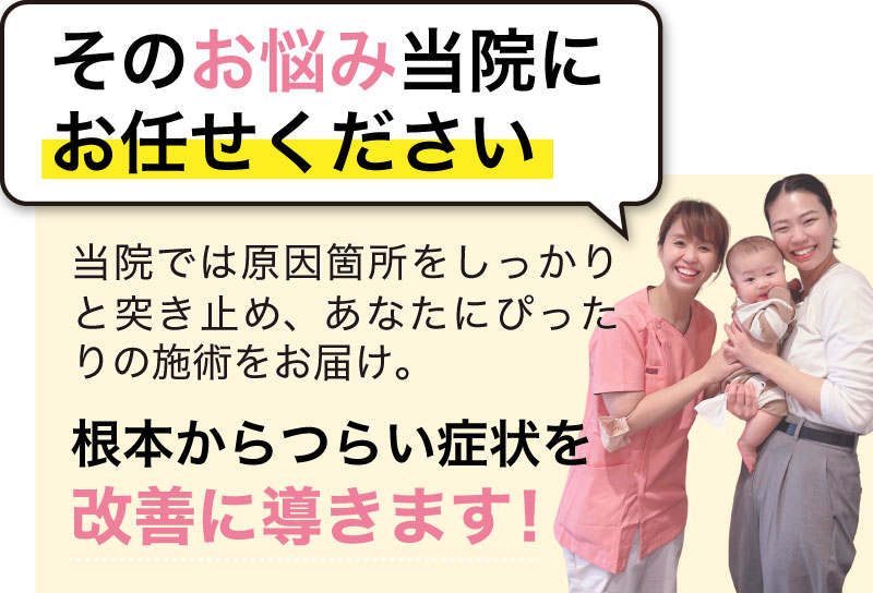 症状の改善はもちろん、予防やメンテナンスも大切です。健康で美しいママさんになるためにも、ぜひ当院をご利用ください。