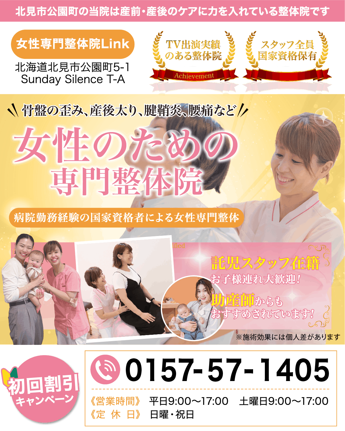妊娠・出産・子育て期の女性をサポート。オホーツクの頼れる女性専門整体院です。