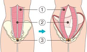 妊娠すると、腹筋は内側からぐーっと伸ばされ、出産後に見てみると、ちょうど縦割れのライン(みぞおち〜恥骨)に溝ができていることがあります。