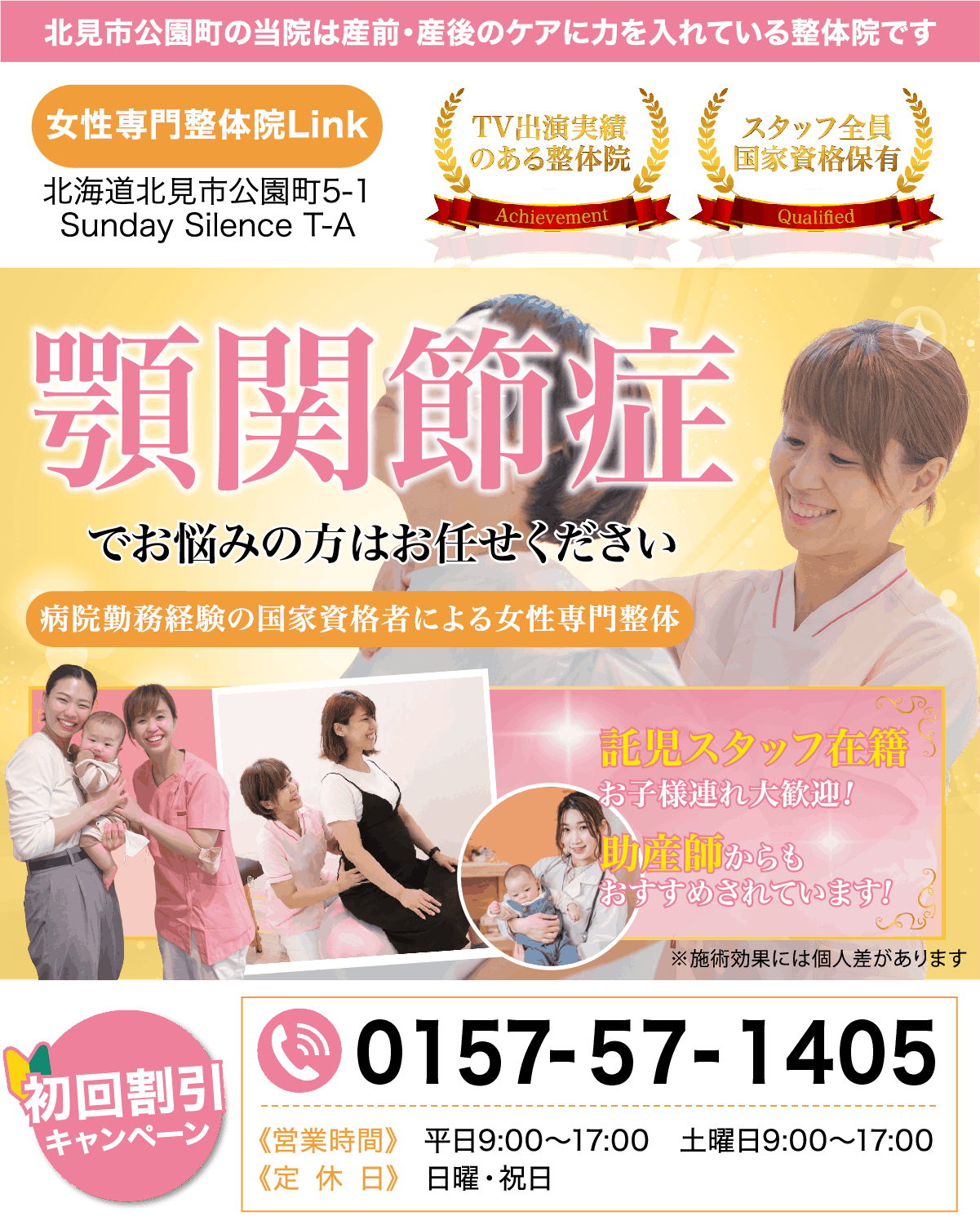 女性専門整体院Link北見店のホームページへお越しいただきありがとうございます。Link北見店は、北海道北見市公園町に位置する女性専用の整体院です。肩こり、腰痛、膝の痛みなどの症状から、女性特有の悩みまで幅広く対応しています。国家資格を持つ施術者が、医療機関での勤務経験と知識を活かし、安全で効果的な施術を提供いたします。