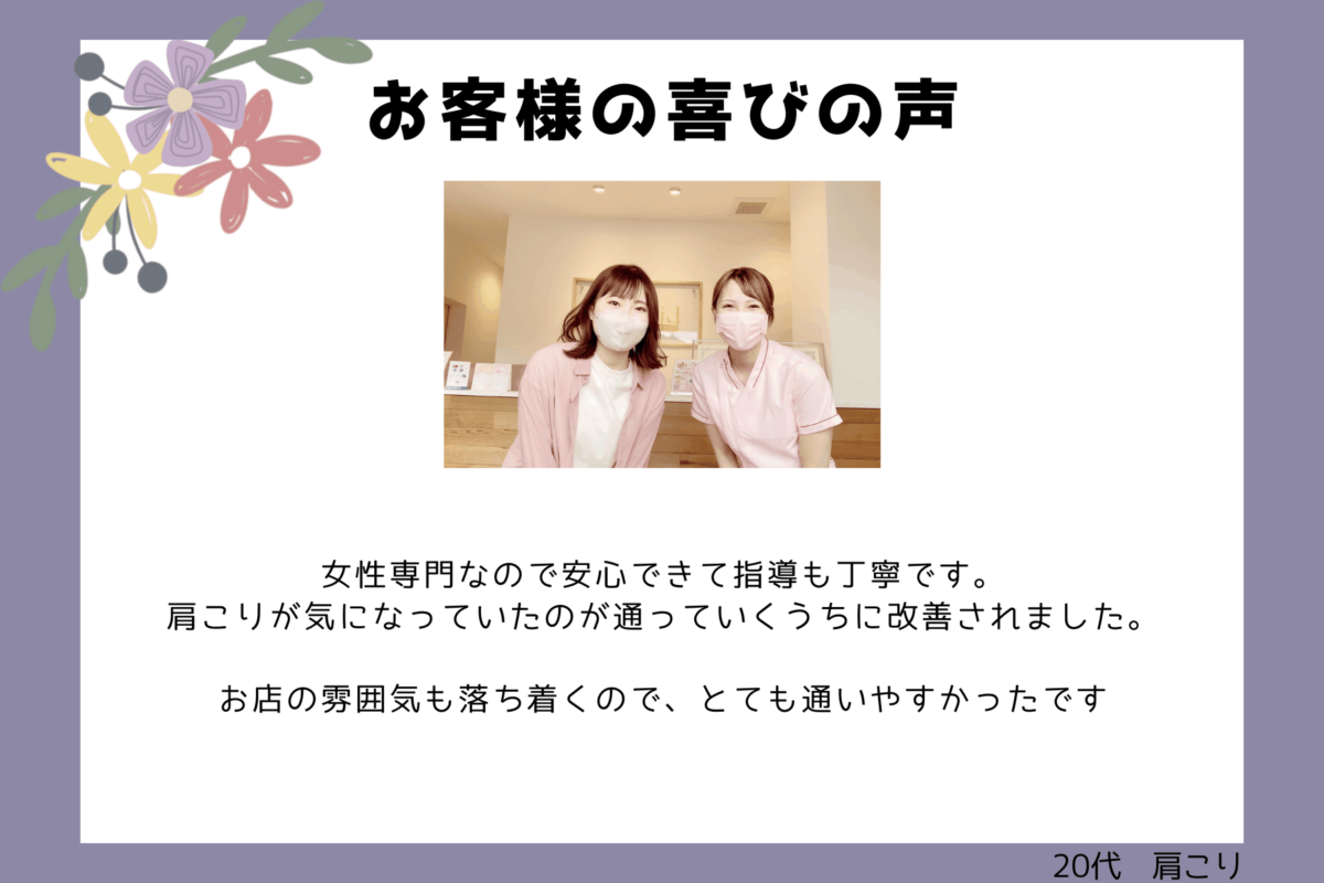 肩こりが解消!女性専門の安心サポートと落ち着く空間